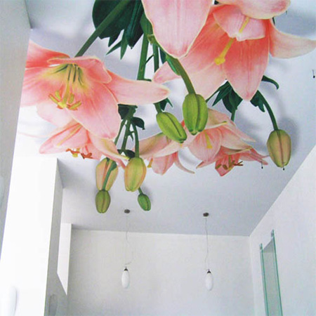 Практически все фирмы-производители изготавливают художественные натяжные потолки. Естественно, они стоят намного дороже обычных цветных натяжных потолков, но эффект, который они создают, бесценен. На такой потолок по желанию клиента можно нанести любое изображение. В среднем, цена за 1 м² художественного потолка будет составлять порядка $45.