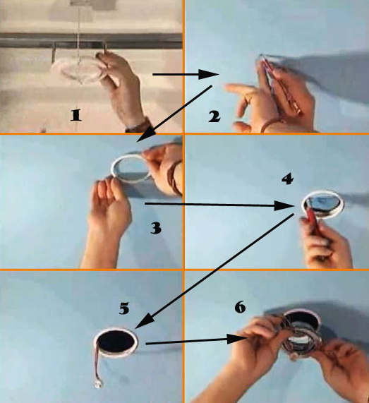 После монтажа натяжного потолка в нем делают технологические отверстия для проводов, коммуникаций, установка люстр.