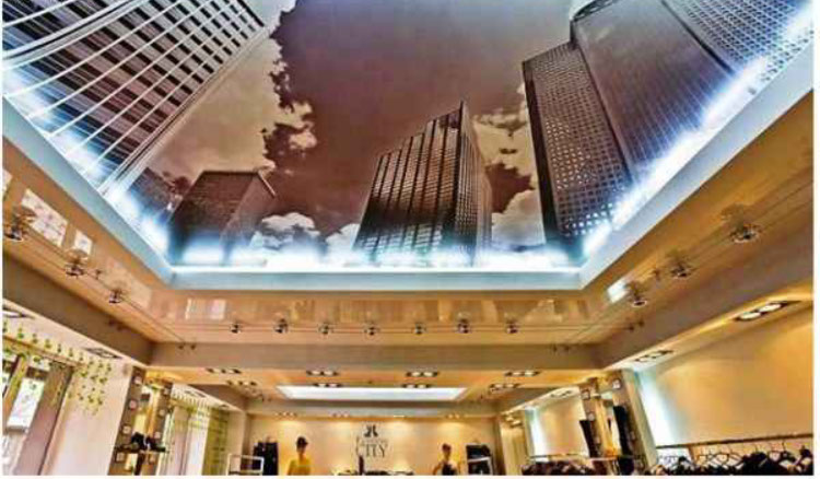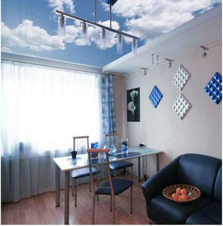 Не стоит думать, что фотопечать на натяжном потолке – это поверхностный рисунок. Использование уникального способа нанесения позволяет краске проникнуть глубоко в структуру самого полотна, что создаёт впечатление, будто над вашим потолком поработал великий художник. Чтобы результат превзошёл все ваши ожидания, используются различные способы фотопечати, особые световые эффекты, различные цветовые и фактурные сочетания. Можно сказать, что натяжные потолки с фотопечатью – это основной элемент, задающий весь стиль помещения.