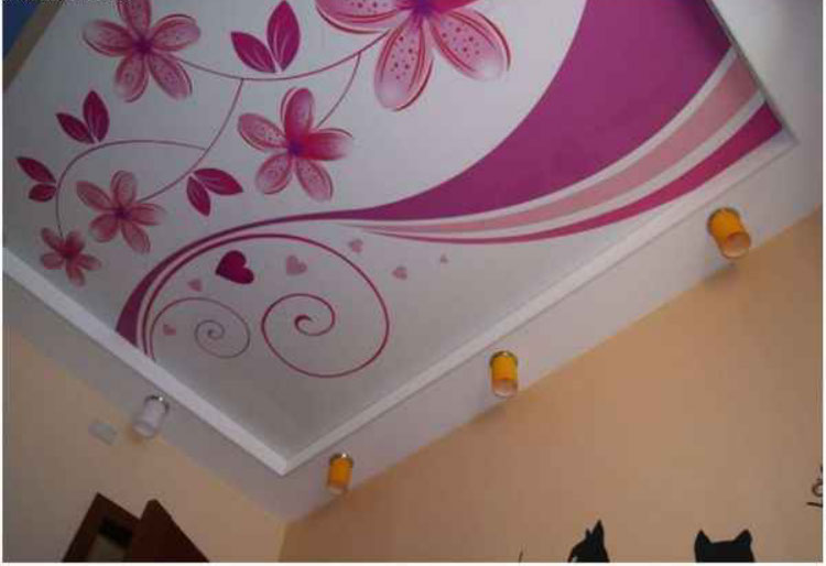 Так, для кухни чаще выбирают различные натюрморты, фрукты или пейзажи. Для гостиной, комнаты подростка или кабинета подойдут абстрактные изображения, имитация фрески, картина. А в спальне чаще размещают изображение неба, звёзд или морские пейзажи. Для детской подбирайте рисунок, учитывая предпочтения маленького хозяина. Чаще печатают героев любимых мультфильмов, бабочек, цветы или животных. Однако помните, что ребёнок растёт и возможно через несколько лет его не устроит такой рисунок, а потолок перетягивать не захочется, поэтому при выборе изображения учитывайте особенности взрослеющего малыша.